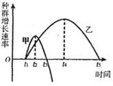 右图表示一个生物群落中甲、乙两个种群的增长速率随时间变
