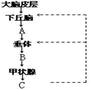 (2)人情绪激动时血液中激素C的含量将会 ,这是由于激素A、B的含量上升所致。这种生理过程是