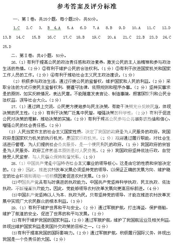 28.(12分)我国农村改革30余年,农村面貌发生了翻天覆地的变化。30年的发展证明,要进一步推进农村改革发展,关键在党。中共十七届三中全会审议通过了《中共中央关于推进农村改革发展若干重大问题的决定》,进一步明确了农村改革发展的方向,提出了农村改革发展的措施,将全力推进农村改革发展向更高目标前进。
