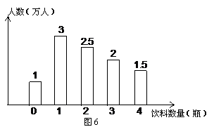 解:(1)由图6知,购买2瓶及2瓶以上饮料的游客人数为2.5+2+1.5=6(万人)
