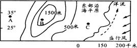 14.A城与C城在气温上有明显的差异,造成这一现象的原因主要是 ( )