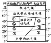 下图为世界气候类型分布模式示意,以北半球为例。读图完成15-17题。