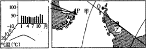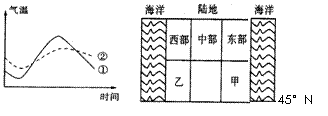 若①②曲线分别表示甲、乙两地气温年变化情况,则有关图示区域的说法正确的是