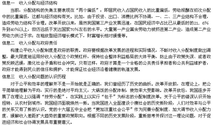 38.(28分)在2010年的中国官方表达中,“调整收入分配”一词正以前所未有的密集度出现在各种场合。实际上,“调整收入分配”已是20l0年官方语境中的共识性语汇。围绕“收入分配与社会发展”,某校高三(1)班同学积极开展了探究性学习活动,收集到以下信息: