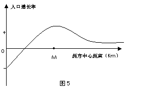 图5为某城市常住人口数量增长率与距市中心距离关系图,读图完成9-11题。