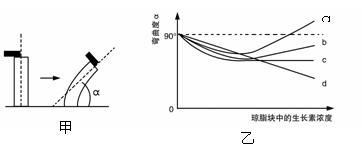 某研究小组探究避光条件下生长素浓度对燕麦胚芽鞘生长的影响。胚芽鞘去顶静置一段时间后,将含有不同浓度生长素的琼脂块分别放置在不同的去顶胚芽鞘一侧,一段时间后测量并记录弯曲度(α)。下图中甲为实验示意图。乙图曲线中能正确表示实验结果的是