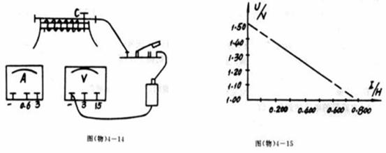 (3)(6分)在测定电源电动势和内阻实验中某同学已接了几根导线,如图4-14所示,不改动已接导线,在闭合电键前,不再移动变阻器滑片C位置,把还需要连接的导线画在图中,根据实验测量数据画的I-I图,如图4-15所示,由图可知如果将这个电池的正、负极短路,则短路电流为_______________,这个电池的电阻为___________。