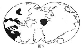 图5中阴影部分为某种自然资源的全球分布情况,读图回答8-10题。