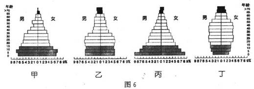 图6为“l915-2004年间我国某省人口金字塔的演变图”,读图回答11-12题。