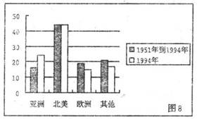 读“日本产业向外转移比例变化图(图8)”,回答16-l8题。