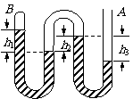 (2006)如图所示,竖直放置的弯曲管A端开口,B端封闭,密度为ρ的液体将两段空气封闭在管内,管内液面高度差分别为h1、h2和h3,则B端气体的压强为(已知大气压强为p0)