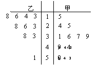 已知甲、乙两名篮球运动员某十场比赛得分的茎叶图如图所示,则甲、乙两人在这十场比赛中得分的平均数与方差的大小关系为( )