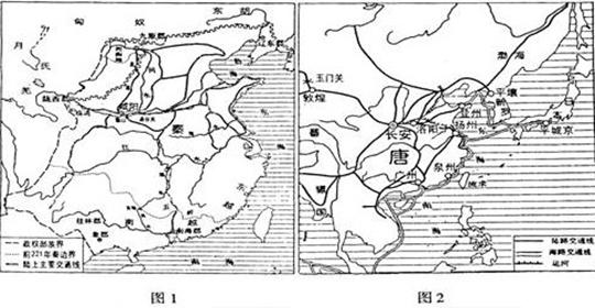 (2).结合图2,概括隋唐时期交通发展的特点。(2分)并结合史实,举一例说明交通发展对城市经济繁荣产生的影响。2分)