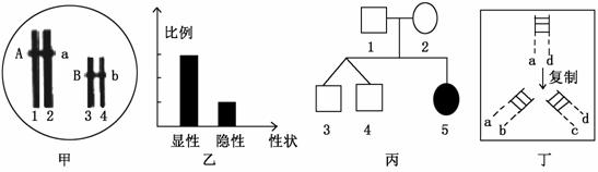 D.从丁图DNA复制可看出DNA复制方式是半保留复制。