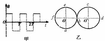 某一空间存在着强度不变、方向随时间周期变化的匀强磁场,如图甲所示,规定垂直纸面向里的磁场方向为正方向,为了使静置该磁场中的带正电的粒子能做横“∞”字曲线运动且逆时针方向通过efab(轨迹如图乙),已知磁场变化周期T等于粒子完成一次“∞”字的时间,则可行的办法是(粒子只受磁场力作用,其他力不计)( )