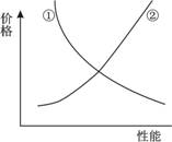 5.评价原则之间常存在矛盾。一般说来,要提高产品的性能, 就要增加成本,导致产品价格上升;要考虑经济性,就制约了产品性能的提升。右图中,体现性能与价格的这种关系的曲线是