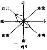 图9为某城镇多年平均风频图,读图回答33-34题。
