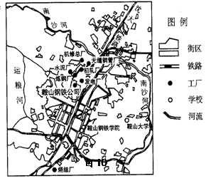 图10为鞍山市部分工业企业分布图。回答36-39题。