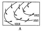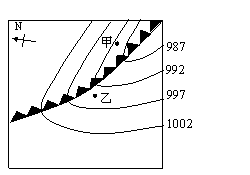 A.乙地的风速比甲地大 B.乙地晴朗甲地阴雨