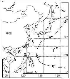 (1)图中甲乙两洋流的名称分别是 洋流和 洋流。图中有世界著名的大渔场