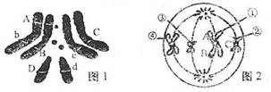 ①图2细胞的名称是 ▲ ,其中的①号染色体的形成是 ▲ 的结果。用数字表示细胞中的一个染色体组 ▲ 。