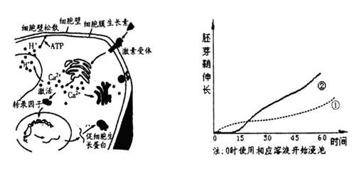 31.(7分)生长素的主要作用是促进细胞纵向伸长,其作用机理如左下图所示。请据图回答: