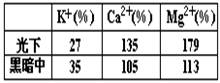 ④植物在光下和黑暗中吸收无机盐的速率不同[光下吸收K+的速度比黑暗条件下要快(或光下吸收Ca2+、Mg2+的速度比黑暗条件下要慢