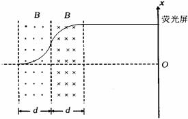 (3)若电子能够穿过磁场区域而打到荧光屏上,试在答题卡的图上定性地画出电子运动的轨迹。