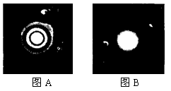4.(2001)A、B两幅图是由单色光分别射到圆孔而形成的图象,其中图A是光的 (填干涉或衍射)图象。由此可以判断出图A所对应的圆孔的孔径 (填大于或小于)图B所对应的圆孔的孔径。