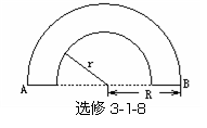 7.如图3-1-8所示,空气中有一横截面为半圆环的均匀透明柱体,其内圆半径为r,外圆半径为R,R=