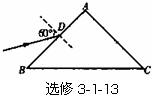 13.如图3-1-13所示,一等腰直角棱镜,放在真空中,AB=AC=d.在棱镜侧面AB左方有一单色光源S,从S发出的光线SD以60°入射角从AB侧面中点射入,当它从侧面AC射出时,出射光线偏离入射光线的偏向角为30°,若测得此光线传播的光从光源到棱镜面AB的时间跟在棱镜中传播的时间相等,那么点光源S到棱镜AB侧面的垂直距离是多少?