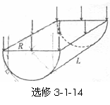 ,半径为R、长为L。一平行光束从半圆柱体的矩形表面垂直射入,从部分柱面有光线射出。球该部分柱面的面积S。
