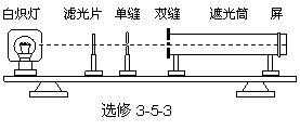 ⑤在单缝和光源间放上滤光片,观察单色光的干涉条纹。