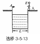 如图3-5-13所示,游泳池宽度L=15 m,水面离岸边的高度为0.5 m,在左岸边一标杆上装有一A灯,A灯距地面高0.5 m,在右岸边站立着一个人,E点为人眼的位置,人眼距地面离1. 5 m,若此人发现A灯经水反射所成的像与左岸水面下某处的B灯经折射后所成的像重合,已知水的折射率为1.3,则B灯在水面下多深处?(B灯在图中未画出)