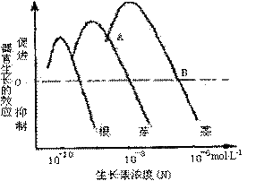 (5)从图中可以看出,植物体的根、茎和芽对生长素浓度的敏感程度由高到低的顺序 。