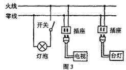 情况,当灯泡、电视和台灯三个用电器均工作时,