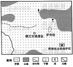 42、(旅游地理)罗布泊地区位于新疆塔里木盆地东部,以其神秘色彩令人神往。下图是罗布泊地区旅游资源分布示意图。读图回答下列问题。(10分)