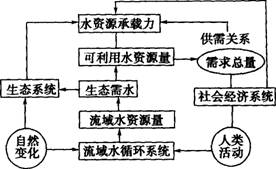 下图为区域(流域)量化水资源承载力的系统关系图。结合此图回答16-17题。