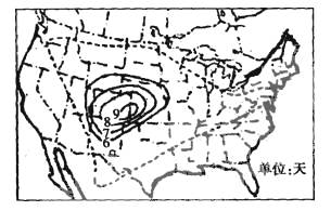 下图是美国1933年4月发生的黑风暴分布图。据此回答18-20题。