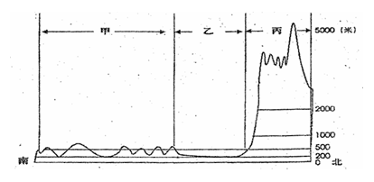 下列两个国家的地形剖面图8(甲剖面线为55oN ,乙剖面线为23o26´S),回答13题。