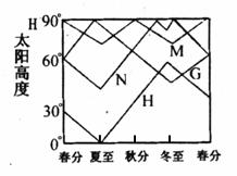 11.右图中的四条折线所表示的纬度与数码相对应的一组正确的是: