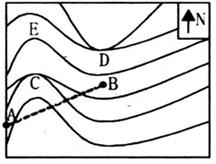 A.A、B、E三地中,B处是建火情瞭望哨最佳地点