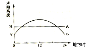 读北半球夏半年某日,A、B两地太阳高度角随时间的变化曲线图。回答19-20题