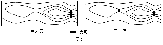 读图2某地打算开发水能资源,并设计了甲、乙两个方案,回答7-9题。