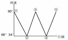 晨昏线与北半球纬线圈相切于H点,读H点纬度的年变化示意图。回答9-10题。