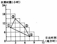 右图是不同地点6月22日的日出时刻与日照时数之间的关系。读图,回答37-39题。