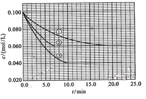 C分别在三种不同实验条件下进行,它们的起始浓度均为c(A)=0.100mol/L、c(B)=0.200mol/L及c(C)=0mol/L。反应物A的浓度随时间的变化如下图所示。