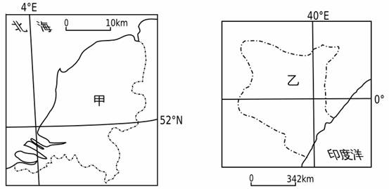 图2示意的甲、乙两国分别为传统、新兴的鲜切花生产国。读下图,请完成20-21题。