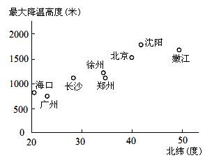 22.据上图反映的变化趋势,对下列各地最大降温高度的推断,正确的是