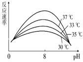 30.某同学研究温度和pH对某酶促反应速率的影响,得到右图的曲线。下列分析正确的是